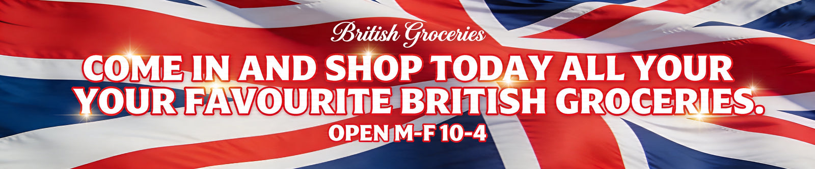 We are a retail specialty British food store. Come in and shop Monday through Friday, 10–4.
